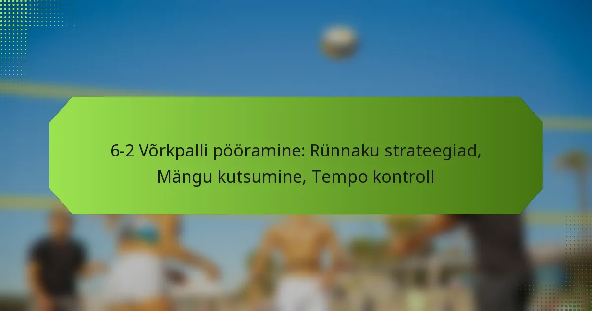Tempokontroll 6-2 võrkpalli pöörde süsteemis on hädavajalik rünnakute tõhususe maksimeerimiseks ja skoorimisvõimaluste loomiseks. Tempo viitab mängu kiirusel ja rütmile, mõjutades meeskonna dünaamikat ja võimet kohanduda vastaste strateegiatega.